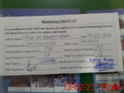| Certified that this School was Inspected by the Undersigned MEA/DMO Today and the Information Stated Above is as Per Record. | |||||