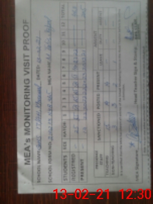 | Attendance Register | Head Teacher | MEA with School | Visit Proof |