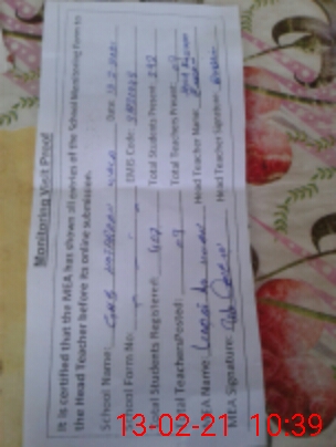 | Attendance Register | Head Teacher | MEA with School | Visit Proof |