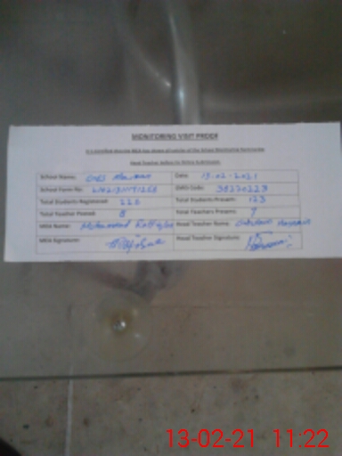 | Certified that this School was Inspected by the Undersigned MEA/DMO Today and the Information Stated Above is as Per Record. | |||||