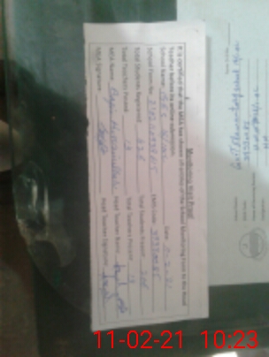 | Monitoring Date: 11-02-2021 | Start Time: 11-02-2021 09:39 AM | End Time: 11-02-2021 10:23 AM | Name of MEA: BA**** HU**** SH**** | |