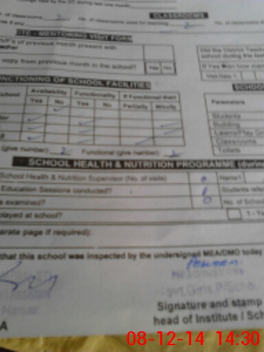 | Certified that this School was Inspected by the Undersigned MEA/DMO Today and the Information Stated Above is as Per Record. | |||||