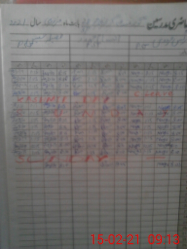| CNIC | Full Name | Designation | R/C | Absence During Last Calender Month |