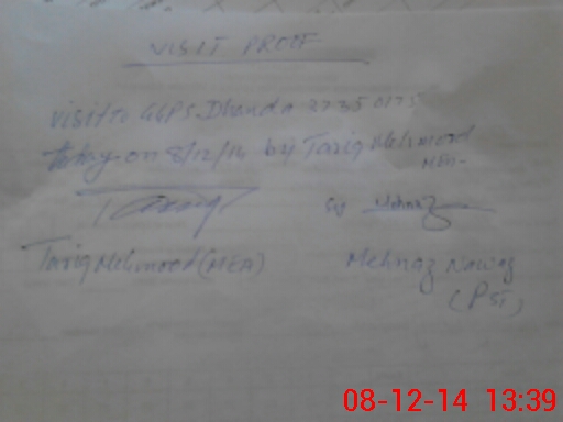 | Attendance Register | Head Teacher | MEA with School | Visit Proof |