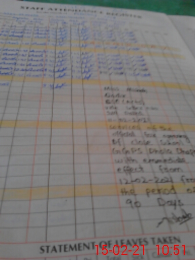 | CNIC | Full Name | Designation | R/C | Absence During Last Calender Month |