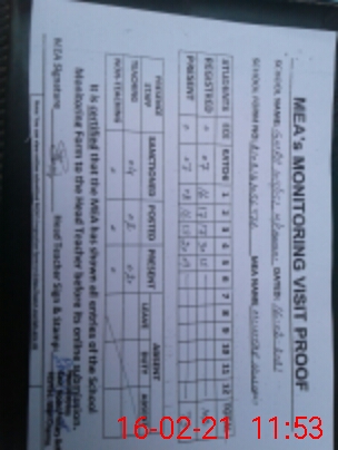 | Monitoring Date: 16-02-2021 | Start Time: 16-02-2021 10:34 AM | End Time: 16-02-2021 12:07 PM | Name of MEA: Mu**** Hu**** on11**** | |