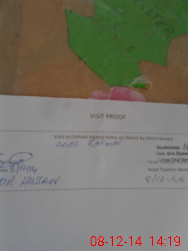 | Attendance Register | Head Teacher | MEA with School | Visit Proof |