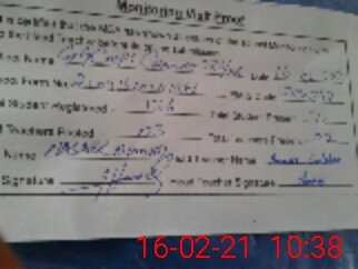 | Monitoring Date: 16-02-2021 | Start Time: 16-02-2021 10:24 AM | End Time: 16-02-2021 10:39 AM | Name of MEA: NA**** AH**** BN**** | |