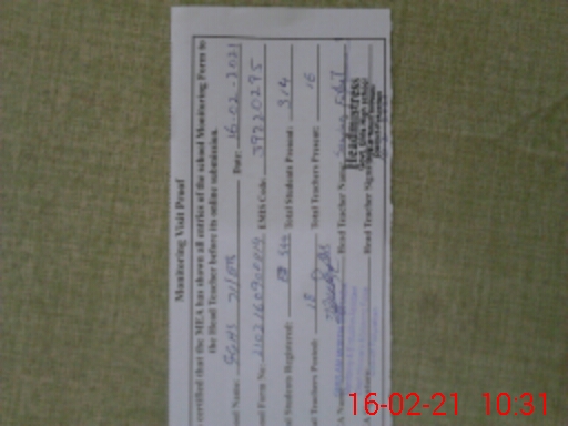 | Certified that this School was Inspected by the Undersigned MEA/DMO Today and the Information Stated Above is as Per Record. | |||||
