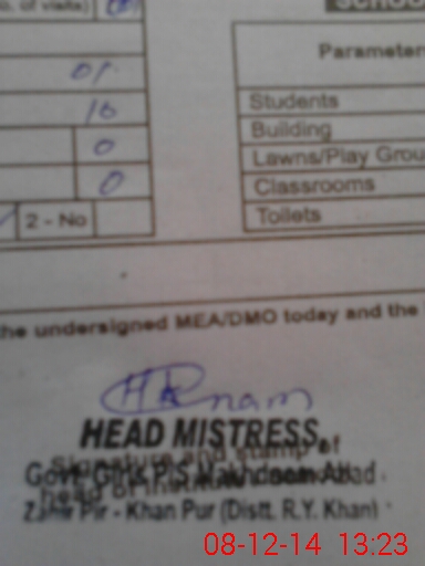 | Certified that this School was Inspected by the Undersigned MEA/DMO Today and the Information Stated Above is as Per Record. | |||||