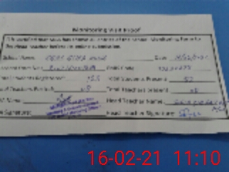 | Monitoring Date: 16-02-2021 | Start Time: 16-02-2021 10:01 AM | End Time: 16-02-2021 11:10 AM | Name of MEA: ZM**** Ak**** | |