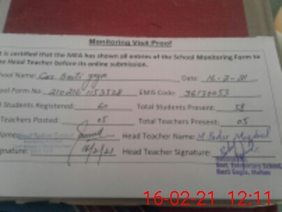 | Certified that this School was Inspected by the Undersigned MEA/DMO Today and the Information Stated Above is as Per Record. | |||||