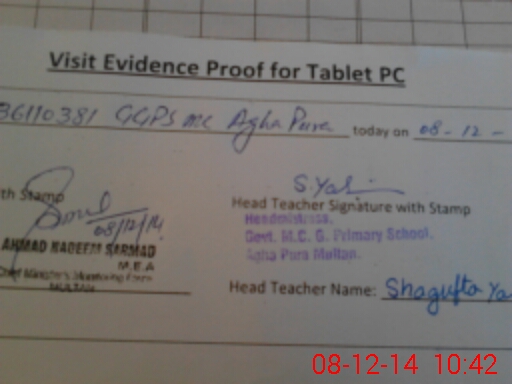 | Attendance Register | Head Teacher | MEA with School | Visit Proof |