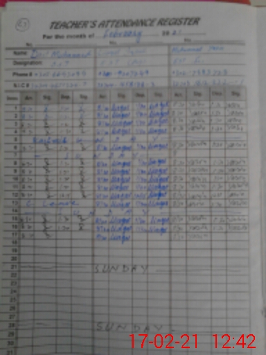 | Name: Mu**** Sh**** Kh**** Designation: (School Headmaster's/Headmistress's) S.S.T.(GEN) Phone/Cell Number: 03**** |
