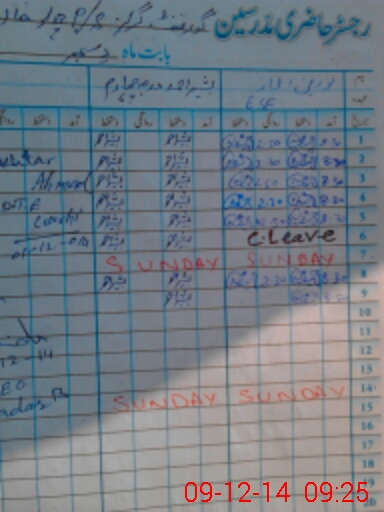 | CNIC | Full Name | Designation | R/C | Absence During Last Calender Month |