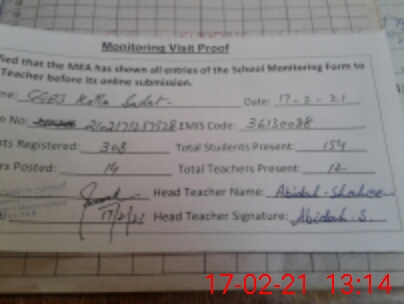 | Attendance Register | Head Teacher | MEA with School | Visit Proof |