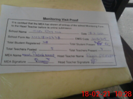 | Attendance Register | Head Teacher | MEA with School | Visit Proof |