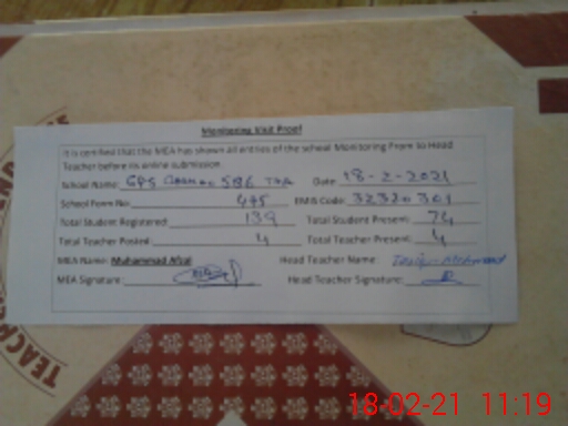 | EMIS Code: 32320301 | Name of School: GPS CHAK NO.586 TDA | |||