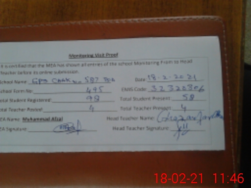 | EMIS Code: 32320306 | Name of School: GPS CHAK NO.587 TDA | |||