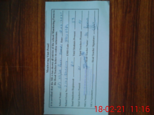 | Attendance Register | Head Teacher | MEA with School | Visit Proof |