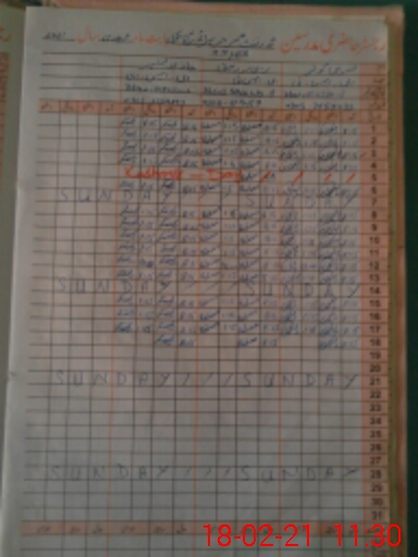 | CNIC | Full Name | Designation | R/C | Absence During Last Calender Month |