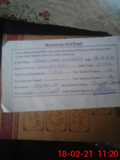 | Certified that this School was Inspected by the Undersigned MEA/DMO Today and the Information Stated Above is as Per Record. | |||||