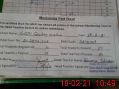 | EMIS Code: 36130349 | Name of School: GGPS GARHEY WAHIN JHOKE VAINCE | |||