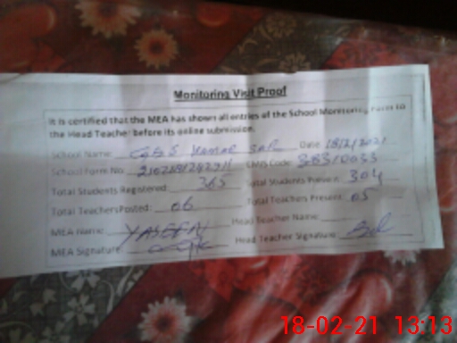 | Certified that this School was Inspected by the Undersigned MEA/DMO Today and the Information Stated Above is as Per Record. | |||||