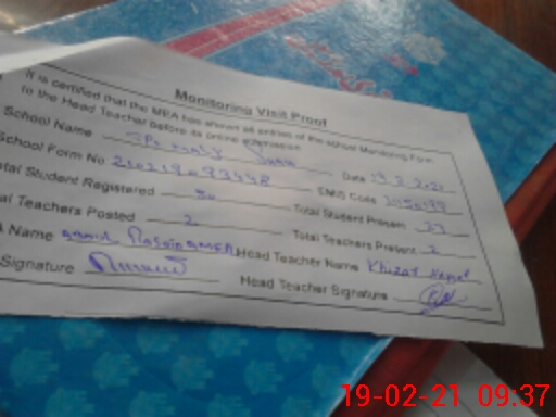 | Certified that this School was Inspected by the Undersigned MEA/DMO Today and the Information Stated Above is as Per Record. | |||||