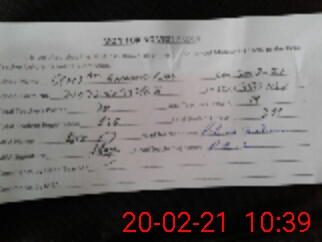 | Monitoring Date: 20-02-2021 | Start Time: 20-02-2021 09:08 AM | End Time: 20-02-2021 10:39 AM | Name of MEA: Ra**** Hu**** Gi**** | |