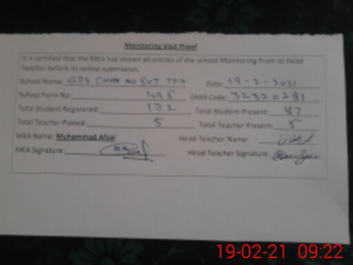 | EMIS Code: 32320281 | Name of School: GES CHAK NO.507 TDA | |||