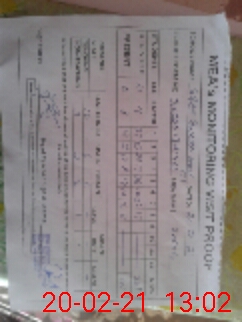 | Monitoring Date: 20-02-2021 | Start Time: 20-02-2021 12:14 PM | End Time: 20-02-2021 01:04 PM | Name of MEA: MU**** ZA**** IQ**** | |