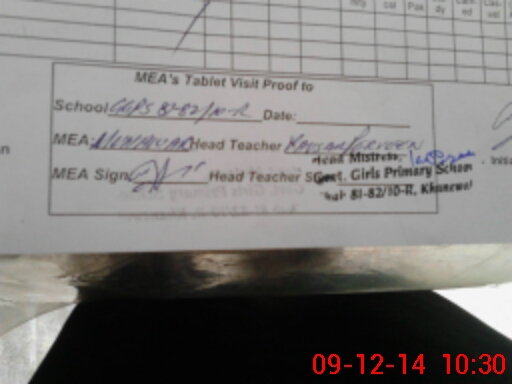 | Attendance Register | Head Teacher | MEA with School | Visit Proof |