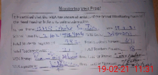 | Attendance Register | Head Teacher | MEA with School | Visit Proof |