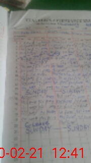 | CNIC | Full Name | Designation | R/C | Absence During Last Calender Month |