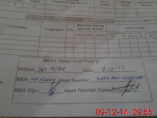 | Attendance Register | Head Teacher | MEA with School | Visit Proof |