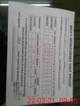 | Certified that this School was Inspected by the Undersigned MEA/DMO Today and the Information Stated Above is as Per Record. | |||||