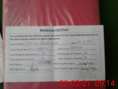 | Certified that this School was Inspected by the Undersigned MEA/DMO Today and the Information Stated Above is as Per Record. | |||||
