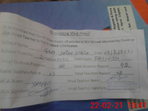 | EMIS Code: 38310379 | Name of School: GGPS JATAN WALA | |||