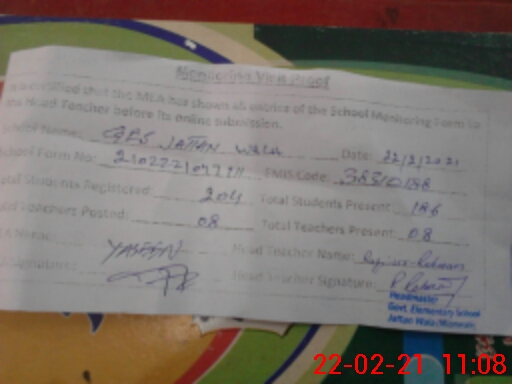 | EMIS Code: 38310188 | Name of School: GES JATTAN WALA | |||