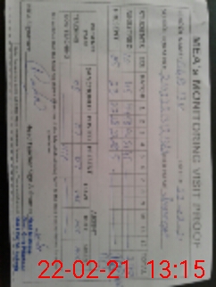 | Monitoring Date: 22-02-2021 | Start Time: 22-02-2021 12:49 PM | End Time: 22-02-2021 01:15 PM | Name of MEA: Sh**** Na**** | |