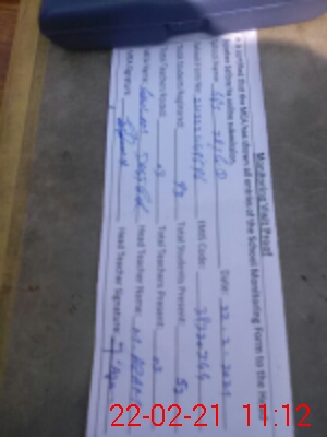 | Attendance Register | Head Teacher | MEA with School | Visit Proof |