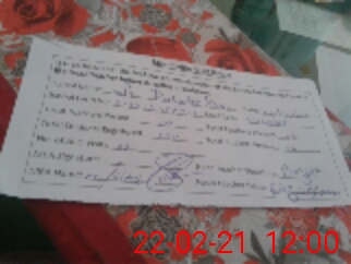 | Name: RI**** HU**** Designation: (School Headmaster's/Headmistress's) P S T Phone/Cell Number: 03**** |