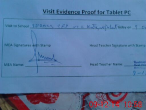 | Attendance Register | Head Teacher | MEA with School | Visit Proof |