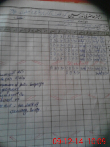 | CNIC | Full Name | Designation | R/C | Absence During Last Calender Month |