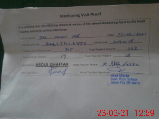 | EMIS Code: 32340018 | Name of School: GHS JAHAN PUR | |||