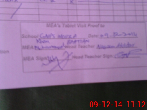 | Attendance Register | Head Teacher | MEA with School | Visit Proof |