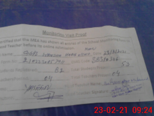| Certified that this School was Inspected by the Undersigned MEA/DMO Today and the Information Stated Above is as Per Record. | |||||