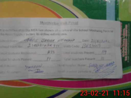 | Certified that this School was Inspected by the Undersigned MEA/DMO Today and the Information Stated Above is as Per Record. | |||||
