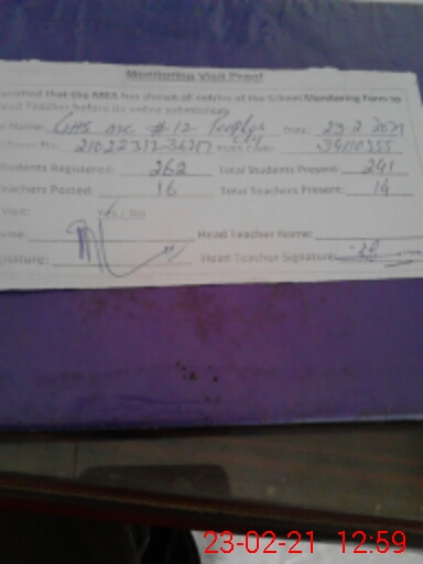 | EMIS Code: 34110555 | Name of School: GHS MC NO.12 PEOPLES COLONY | |||